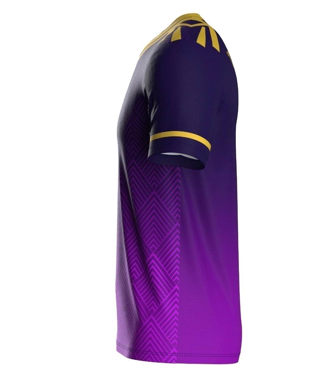 O modelo traz uma combinação exclusiva de roxo e amarelo, com estampa geométrica moderna que transmite energia e personalidade. O acabamento de gola e mangas proporciona um caimento perfeito e maior durabilidade, enquanto o logotipo Tibhar em destaque reforça a autenticidade da peça.